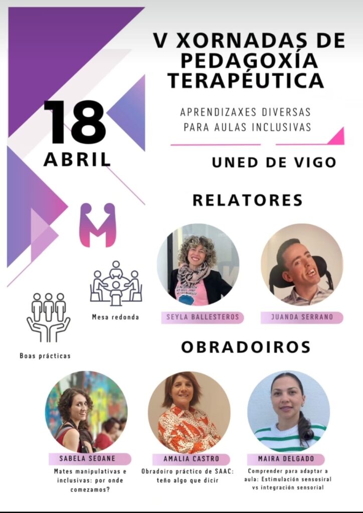 El 18 de abril se llevará a cabo la V Jornada de Pedagogía Terapéutica: aprendizajes diversos para aulas inclusivas. Organizado por la Asociación de Gallega de Maestras y Maestros por la Inclusión (AGA.MPI). Será en Vigo, Galicia. Para mi, es todo un honor haber sido invitada. Estaré hablando sobre Inclusión 2.0: de la intención a la
